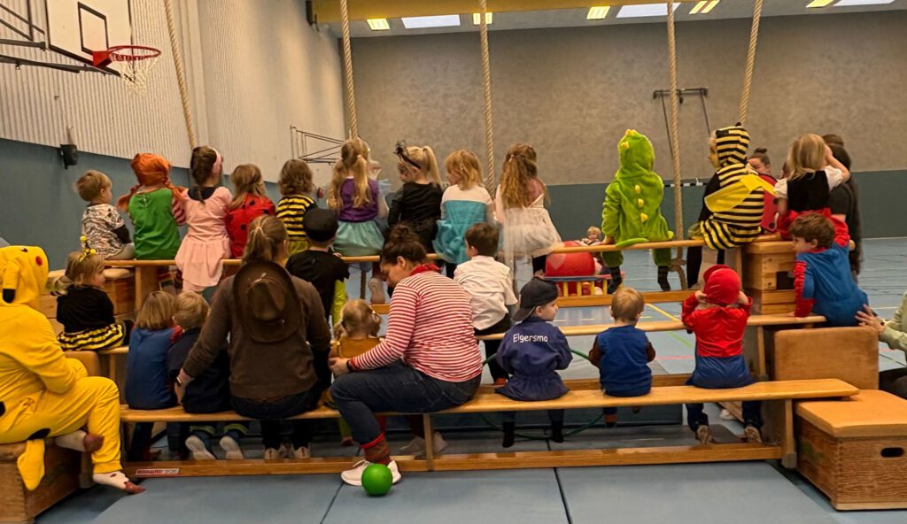 Zwischen Matten, Kästen und Parcours turnten ein mutiger Drache 🐉, ein starker Löwe 🦁, eine fröhliche Pippi Langstrumpf 🧑🦰 und sogar Spiderman 🕷️ durch die Halle.